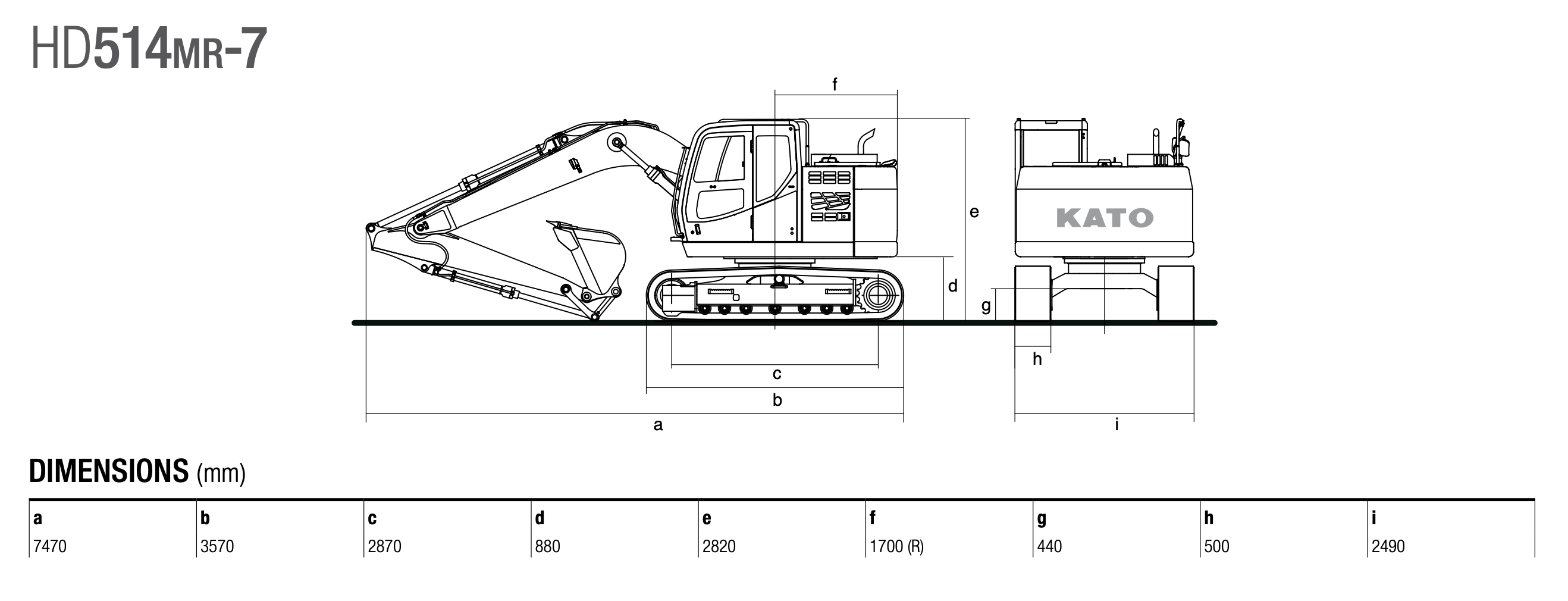 HD514mr-7 — компактна модель із радіусом повороту 1700 мм, зменшеним у порівнянні зі звичайною моделлю HD512-7, зберігаючи таку ж стабільність.