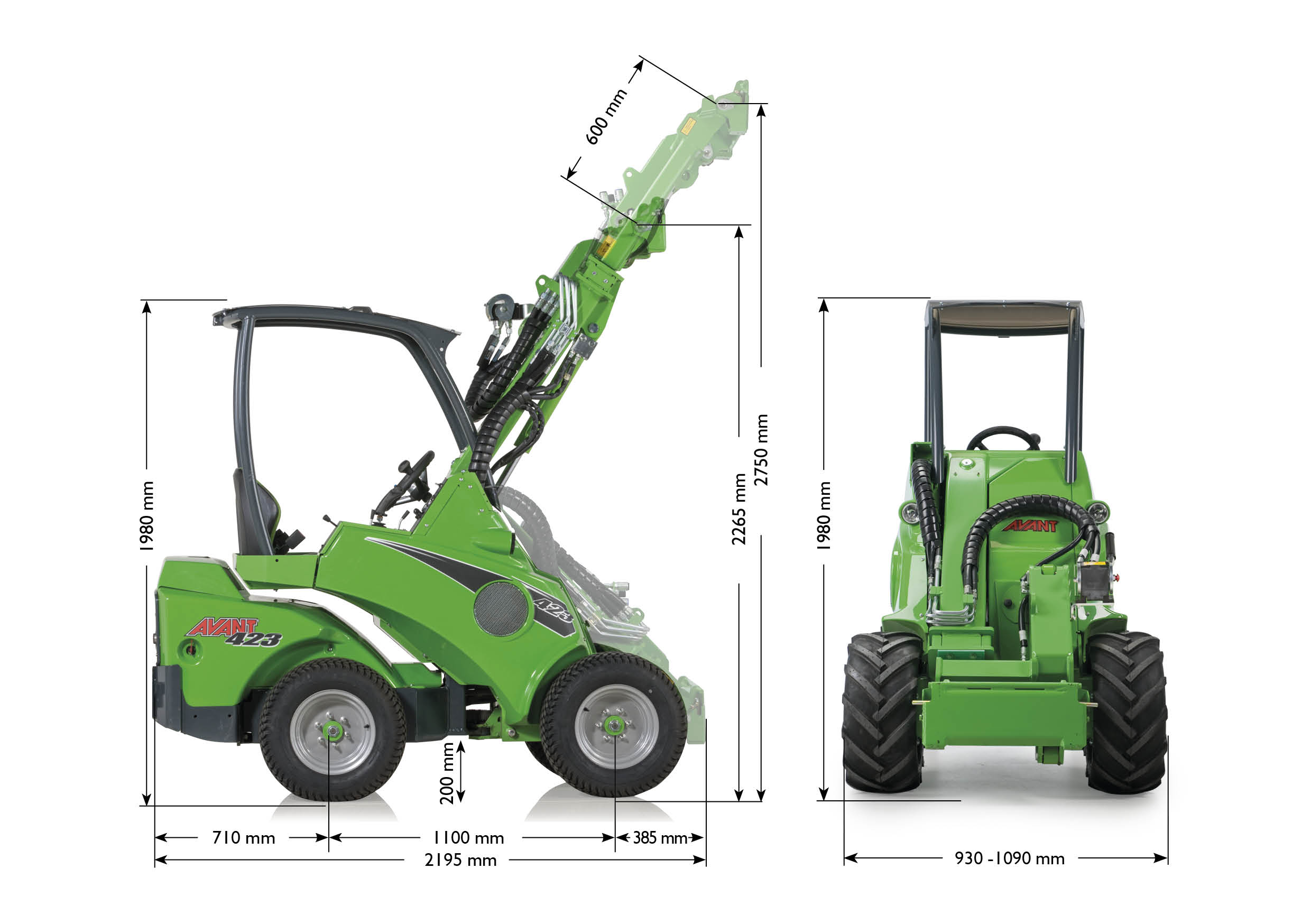 AVANT 423 – справжній спеціаліст, який з легкістю може працювати у важко доступних місцях і найменша модель з дизельним двигуном в асортименті AVANT. Незважаючи на невеликі габарити та малу вагу AVANT 423 з легкістю впорається з вантажами 500 кг.
