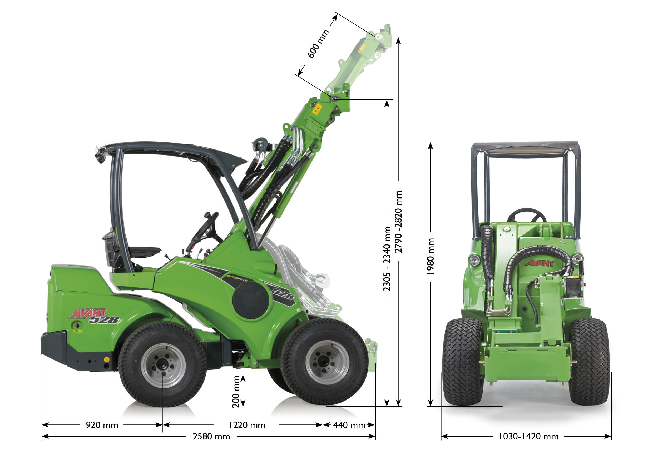 AVANT 528 знаходиться в середині асортименту навантажувачів Avant з точки зору розміру та продуктивності. Навантажувач AVANT 528 добре підходять для широкого кола сегментів клієнтів завдяки своїй додатковів гідросистемі та потужності, необхідній для багатьох робіт. Компактні розміри і хороша маневреність дозволяють працювати в самих різних умовах. AVANT 528 також може піднімати надзвичайно важкі вантажі в порівнянні з габаритами машини.