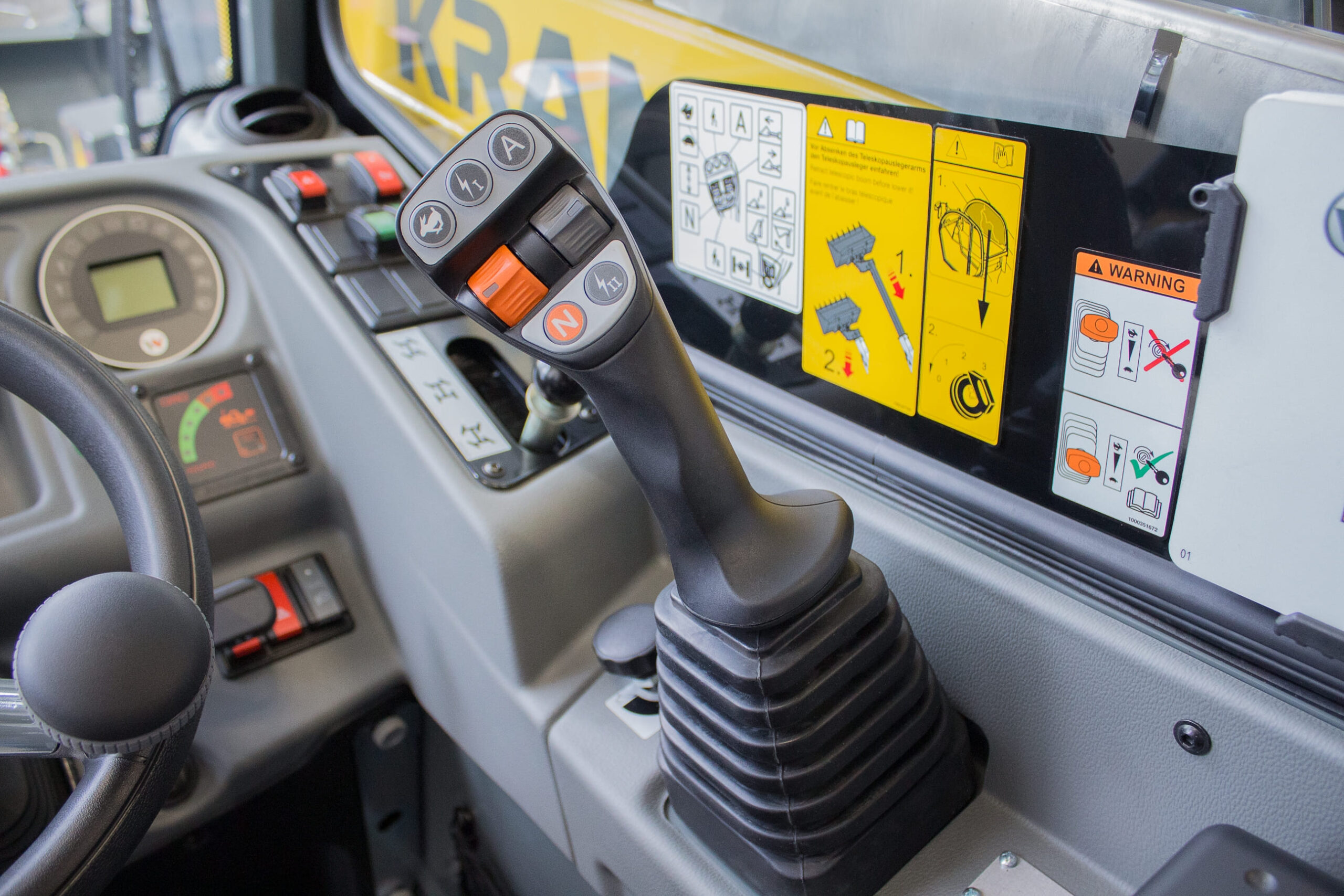– Мультифункціональний джойстик з гідравлічною системою допоміжного управління з перемикачем напрямків руху та функцією телескопування